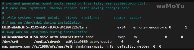 mount -t nfs 192.168.10.1:/volume1/file /mnt/haha4、开机自动挂载