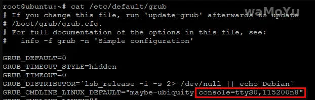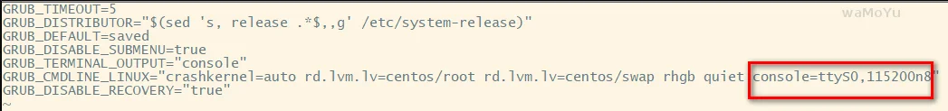 编辑”/etc/default/grub“文件在”GRUB_CMDLINE_LINUX“一行中添加“console=ttyS0,115200n8“注意!添加内容需要在双引号内。vim /etc/default/grub