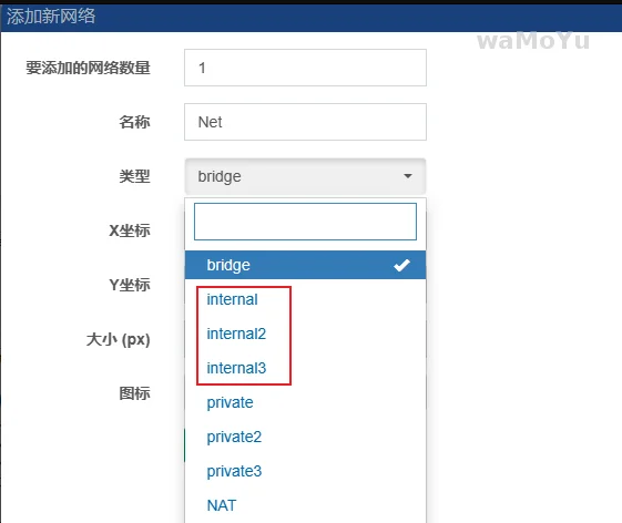 注意!PnetLab中internal有3个,如果要连接该网络请使用同一个internal