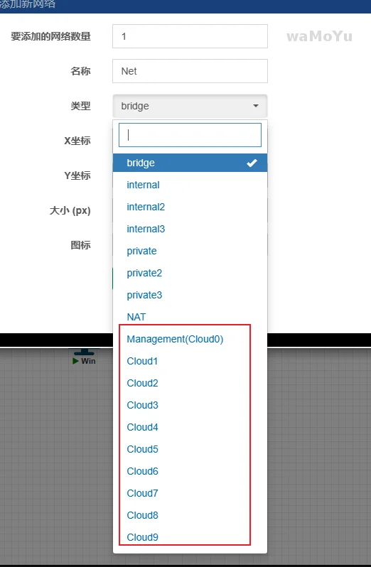 Cloud0-9,其中Cloud0网络为PnetLab的管理口地址,也是PnetLab的网卡0。