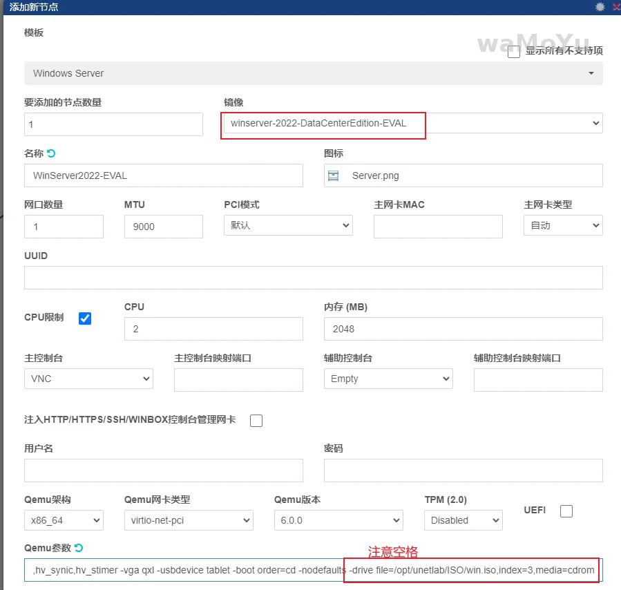 在任意LAB中创建winserver-2022-DataCenterEdition-EVAL节点,并且挂载驱动光盘。