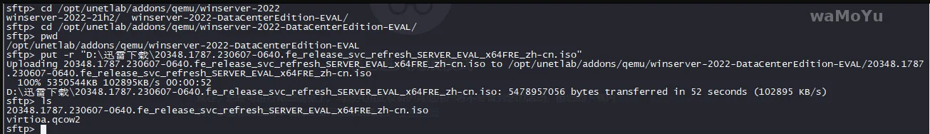 使用工具(例如CRT、xshell、winscp等)将WindowServer2022的镜像上传到镜像文件夹中。
