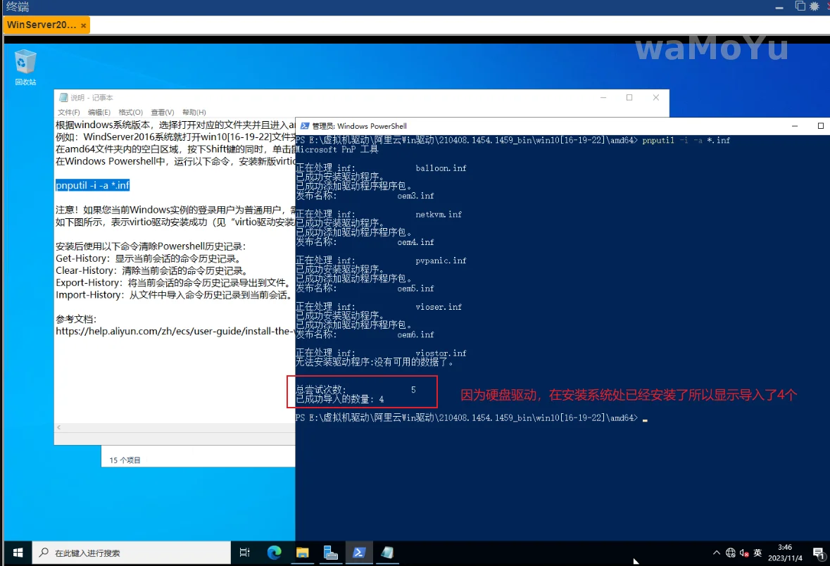 pnputil -i -a *.inf如下图所示,表示virtio驱动安装成功。