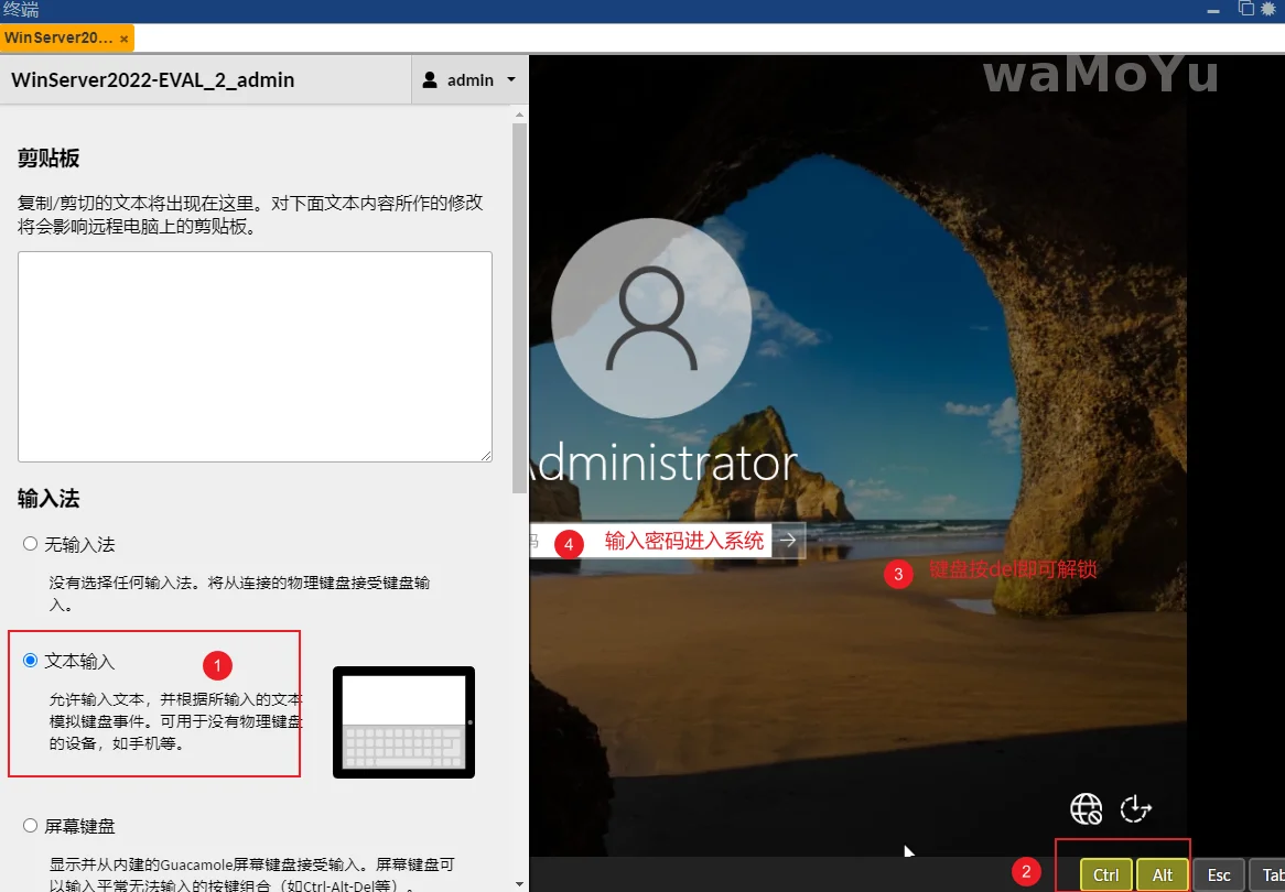 如果无法键盘输入,就把输入法改为“无输入法”就行了。