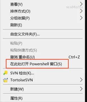 E:\虚拟机驱动\阿里云Win驱动\210408.1454.1459_bin\win10[16-19-22]\amd64。在amd64文件夹内的空白区域,按下Shift键的同时,单击鼠标右键,然后单击在此处打开 Powershell 窗口(S)。