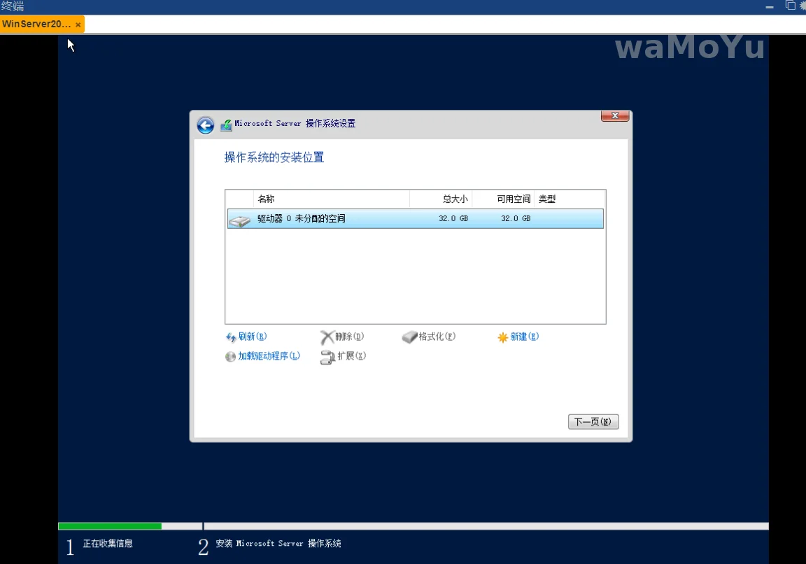 根据WinServer2022规范文档中最低磁盘大小要求,创建一个大小为32G的虚拟磁盘。