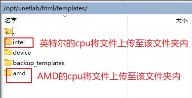模板文件路径:/opt/unetlab/html/templates/intel/ 图标文件路径:/opt/unetlab/html/images/icons/ 镜像文件路径:/opt/unetlab/addons/qemu 脚本文件路径:/opt/unetlab/scripts