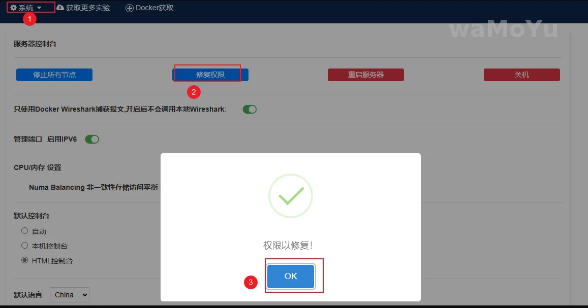 在系统-系统设置中点击修复权限按钮即可。
