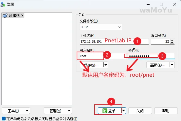 使用WinSCP连接PnetLab的SFTP。