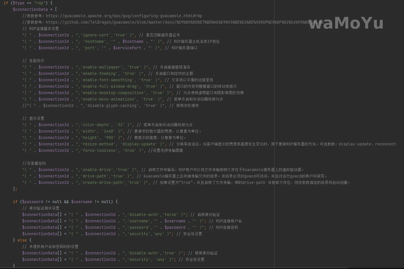 修改下方的php文件,将if ($type == "rdp")和if ($type == "rdp-tls")的内容进行替换