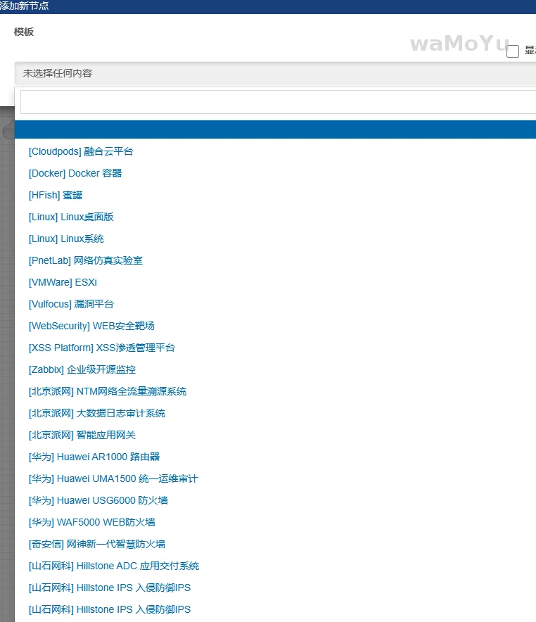 pnetlab中模板可以添加自定义字段,该字段会自动显示在节点设备表单中的最后一行中,默认是输入框形式,建议用于设置设备备注,方便了解其用途或登入方式、账号密码等;也可以用于新增功能,向后端发送表单内容。