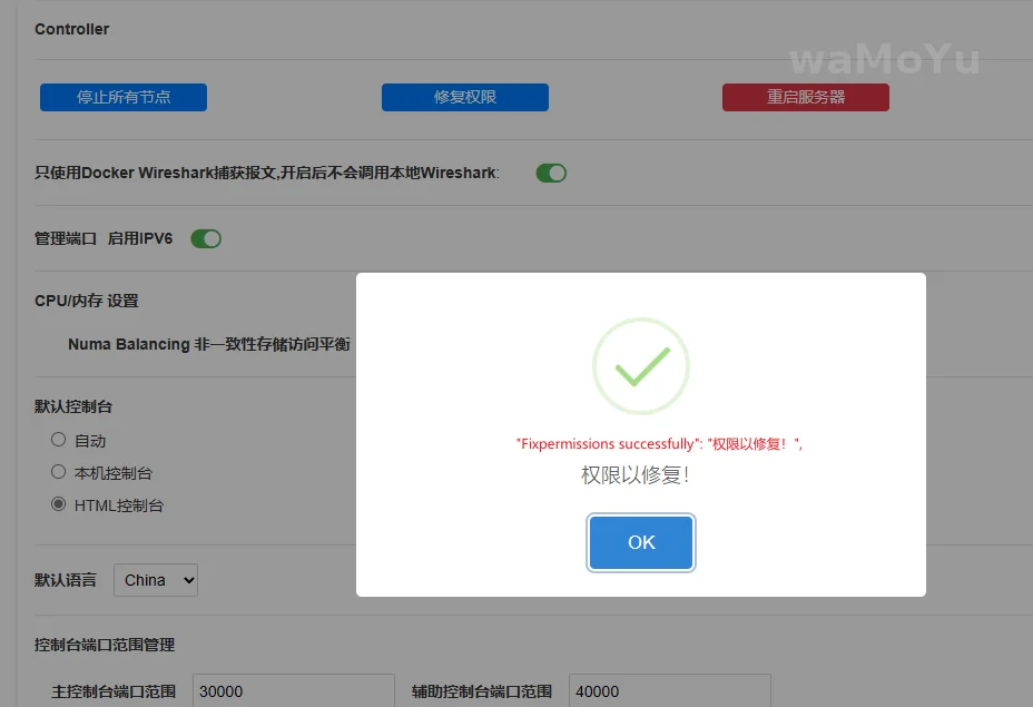 "Fixpermissions successfully": "权限以修复!",