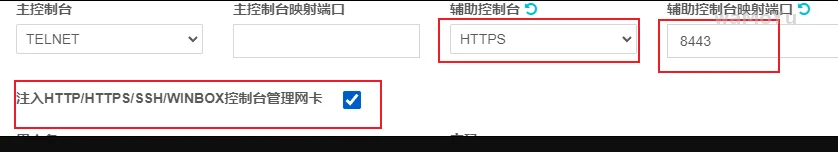添加华为防火墙,并且选择辅助控制台为https,设置端口映射为8443,勾选注入管理网卡。