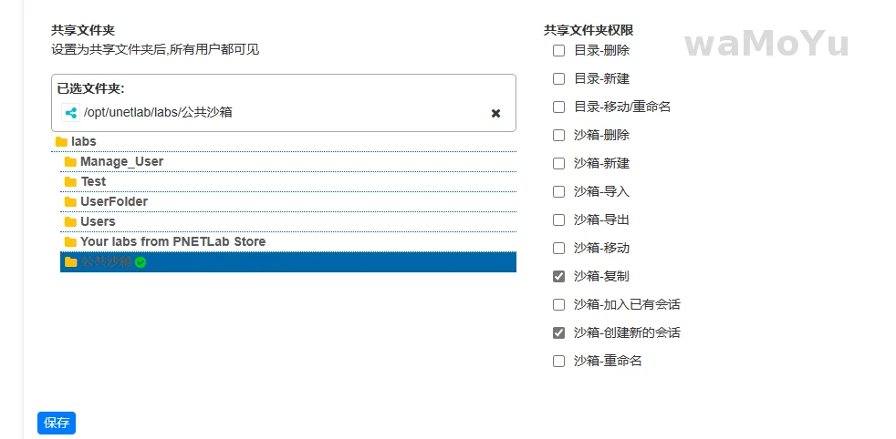 在系统-系统设置中可以设置共享文件夹,该目录下的lab,所以用户都可见
